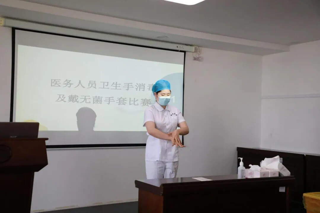 為提高醫(yī)務(wù)人員的手衛(wèi)生意識(shí),規(guī)范手衛(wèi)生行為,我院開展手衛(wèi)生日主題活動(dòng),通過洗手、戴無(wú)菌手套、保潔人員醫(yī)廢鵝頸式封口比賽,規(guī)范醫(yī)廢收集,嚴(yán)防醫(yī)廢泄漏,進(jìn)一步提高全院醫(yī)護(hù)人員、后勤人員對(duì)手衛(wèi)生的重視程度,強(qiáng)化手衛(wèi)生意識(shí),養(yǎng)成良好的手衛(wèi)生習(xí)慣,有效預(yù)防和控制醫(yī)院感染。