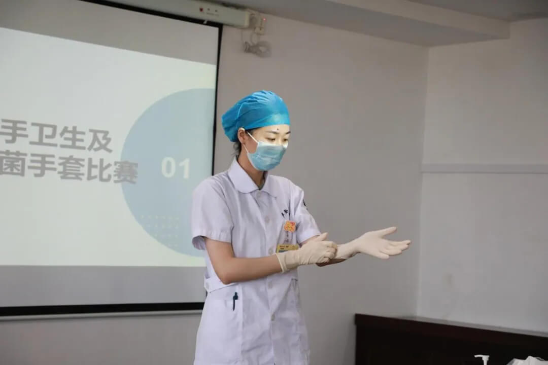 本次活動(dòng)涵蓋了衛(wèi)生手消毒操作演示與競(jìng)賽、戴無(wú)菌手套規(guī)范操作比拼以及保潔阿姨醫(yī)廢鵝頸結(jié)封口比賽等多個(gè)項(xiàng)目。