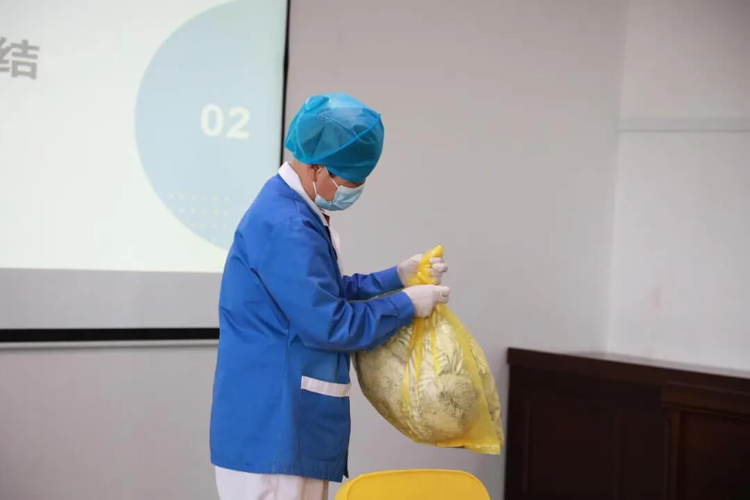 保潔阿姨們參與的醫(yī)廢鵝頸結(jié)封口比賽更是將活動(dòng)推向了高潮。保潔阿姨們個(gè)個(gè)精神飽滿,動(dòng)作利落,熟練地將醫(yī)療廢物袋進(jìn)行鵝頸結(jié)封口處理。這一比賽項(xiàng)目不僅增強(qiáng)了保潔人員對(duì)醫(yī)療廢物規(guī)范處理的意識(shí),也進(jìn)一步提升了她們的實(shí)際操作能力,為醫(yī)院感染防控工作提供了有力保障。