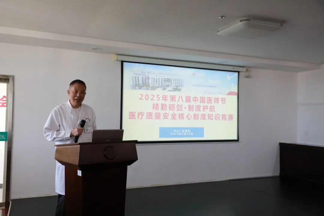 2025年8月19日,我院開展慶祝第八個中國醫(yī)師節(jié)系列活動,通過重溫《中國醫(yī)師宣言》,精勤礪劍·制度護航——醫(yī)療質(zhì)量安全核心制度知識競賽活動,進一步提高診療技術(shù)水平、服務(wù)質(zhì)量和實踐操作能力,確保醫(yī)療安全,激發(fā)醫(yī)務(wù)工作者從業(yè)信念,學(xué)習(xí)制度、遵守制度、捍衛(wèi)制度的自覺性,推動我院醫(yī)療安全的高質(zhì)量發(fā)展。