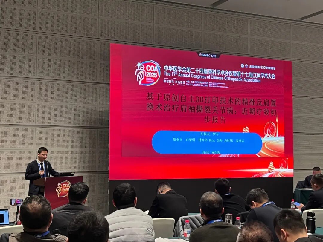 舟山廣安醫(yī)院羅軍副院長受邀參加此次盛會,并在大會上作專題發(fā)言。羅軍副院長展示的骨科3D打印技術(shù)臨床應(yīng)用成果,引起了與會專家的廣泛關(guān)注和熱烈討論。其創(chuàng)新的技術(shù)路線和扎實(shí)的臨床數(shù)據(jù),獲得了海內(nèi)外專家的高度評價(jià),展現(xiàn)了我院在骨科技術(shù)創(chuàng)新方面的實(shí)力。