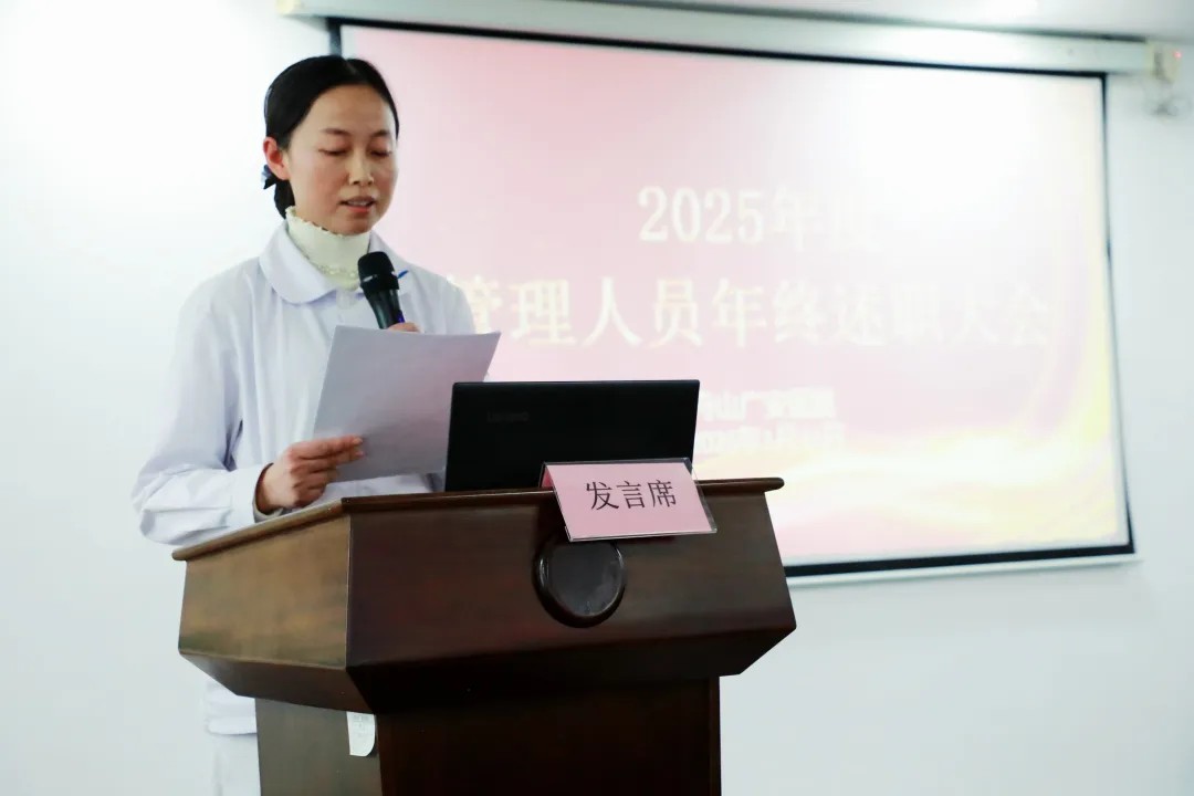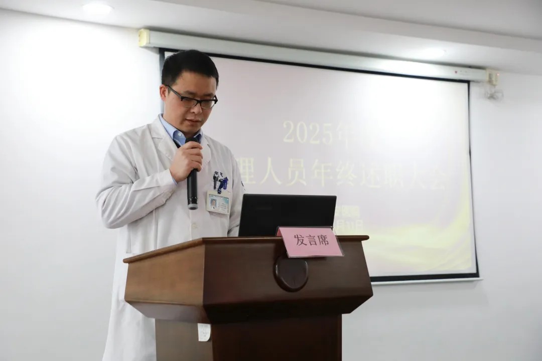 為進(jìn)一步加強(qiáng)中層管理人員隊伍建設(shè),總結(jié) 2025年度工作成績、查找問題不足,并探討2026年科室發(fā)展方向,1月31日下午,我院召開2025 年度管理人員述職大會。院務(wù)會全體成員、全院中層管理人員近30人齊聚一堂,會議由副院長鐘琦靜主持。