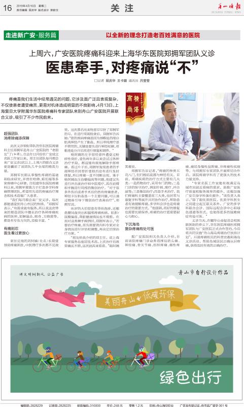 疼痛是我們生活中經(jīng)常遇見(jiàn)的問(wèn)題,它涉及面廣泛且表現(xiàn)復(fù)雜,不僅使患者遭受痛苦,更易對(duì)機(jī)體造成明顯的不良反應(yīng)。4月13日,上海復(fù)旦大學(xué)附屬華東醫(yī)院疼痛科專(zhuān)家團(tuán)隊(duì)來(lái)到舟山廣安醫(yī)院開(kāi)展聯(lián)合義診,吸引了不少市民前來(lái)。