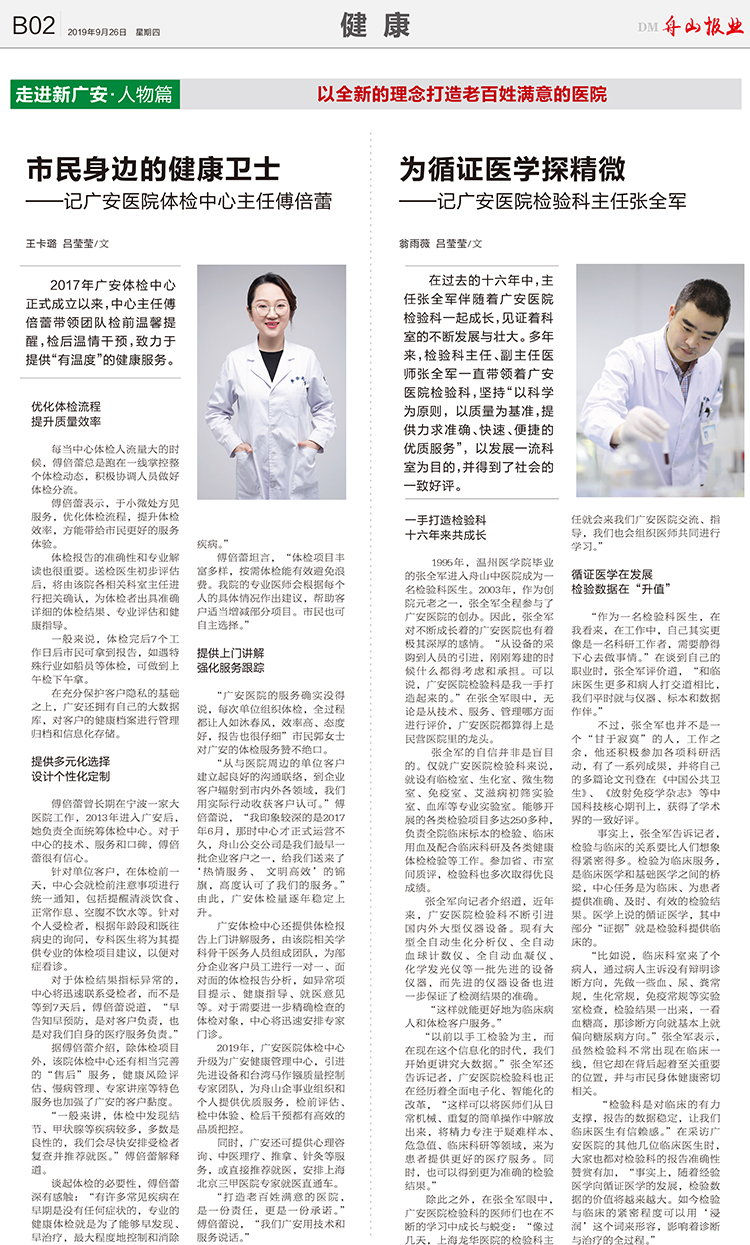 在過去的十六年中,主任張全軍伴隨著廣安醫(yī)院檢驗(yàn)科一起成長,見證著科室的不斷發(fā)展與壯大。多年來,檢驗(yàn)科主任、副主任醫(yī)師張全軍一直帶領(lǐng)著廣安醫(yī)院檢驗(yàn)科,堅(jiān)持“以科學(xué)為原則,以質(zhì)量為基準(zhǔn),提供力求準(zhǔn)確、快速、便捷的優(yōu)質(zhì)服務(wù)”,以發(fā)展一流科室為目的,并得到了社會的一致好評。