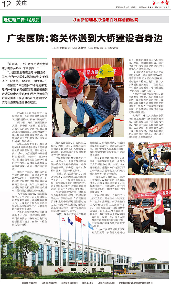 廣安人懷揣著對(duì)于醫(yī)療的敬畏和對(duì)舟山人的大愛,將以更加昂揚(yáng)的姿態(tài)和海納百川的胸懷,不斷把學(xué)科建設(shè)和醫(yī)療技術(shù)水平推向更高的境界,服務(wù)舟山、造福社會(huì)。