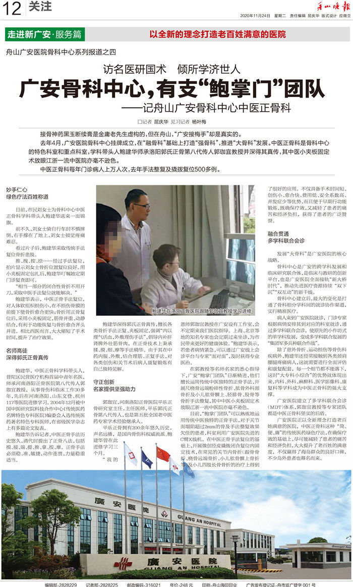廣安人懷揣著對于醫(yī)療的敬畏和對舟山人的大愛,將以更加昂揚(yáng)的姿態(tài)和海納百川的胸懷,不斷把學(xué)科建設(shè)和醫(yī)療技術(shù)水平推向更高的境界,服務(wù)舟山、造福社會(huì)。