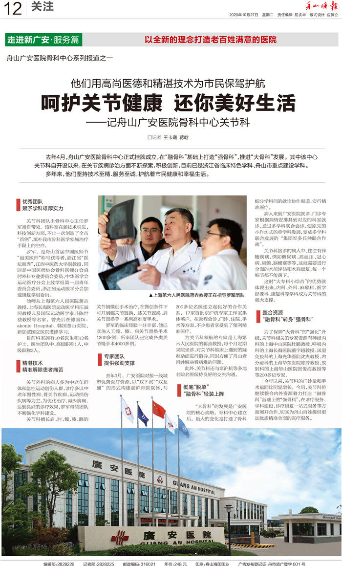 呵護關(guān)節(jié)健康 還你美好生活——記舟山廣安醫(yī)院骨科中心關(guān)節(jié)科