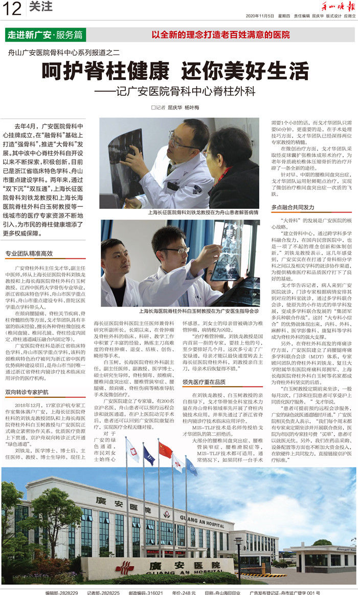廣安人懷揣著對于醫(yī)療的敬畏和對舟山人的大愛,將以更加昂揚的姿態(tài)和海納百川的胸懷,不斷把學(xué)科建設(shè)和醫(yī)療技術(shù)水平推向更高的境界,服務(wù)舟山、造福社會。