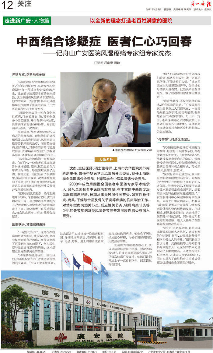 廣安人懷揣著對于醫(yī)療的敬畏和對舟山人的大愛,將以更加昂揚(yáng)的姿態(tài)和海納百川的胸懷,不斷把學(xué)科建設(shè)和醫(yī)療技術(shù)水平推向更高的境界,服務(wù)舟山、造福社會(huì)。
