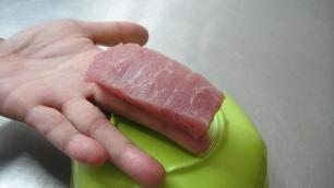 切一塊與食指厚度相同的,與兩指(食指和中指并攏)的長(zhǎng)度、寬度相同的瘦肉相當(dāng)于50克的量,可滿足一天需要蛋白質(zhì)的需求。